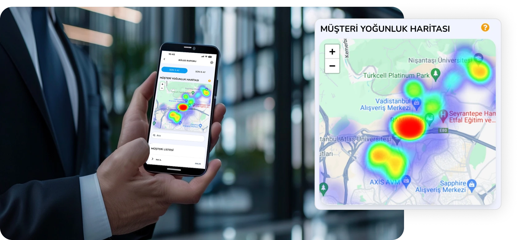 Discover popular areas with the heat map showing customer density, increase your revenues, and improve your sales strategies.