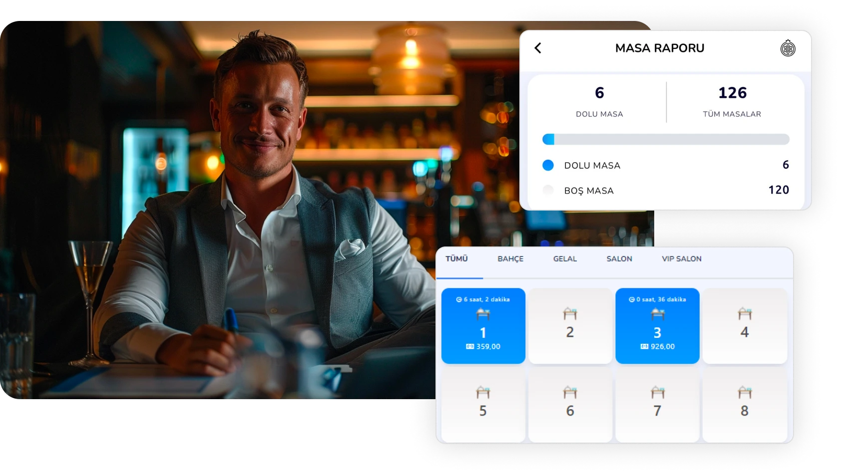 Monitor table occupancy rates and revenues live, optimize the flow within your business.