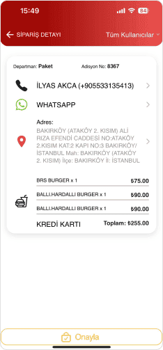 Müşterinin adres ve iletişim bilgileri harita üzerinde kolayca görüntülenir. Bu sayede kuryeler, teslimat sırasında ihtiyaç duydukları tüm bilgilere hızlıca erişebilirler.